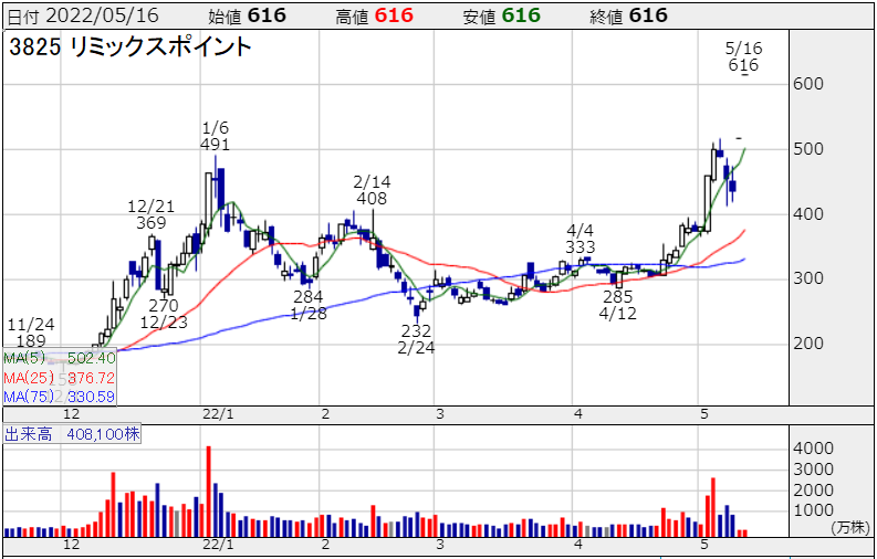 2022年3月期の決算内容を好感されたことでリミックスポイントの株価は