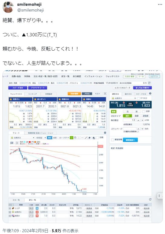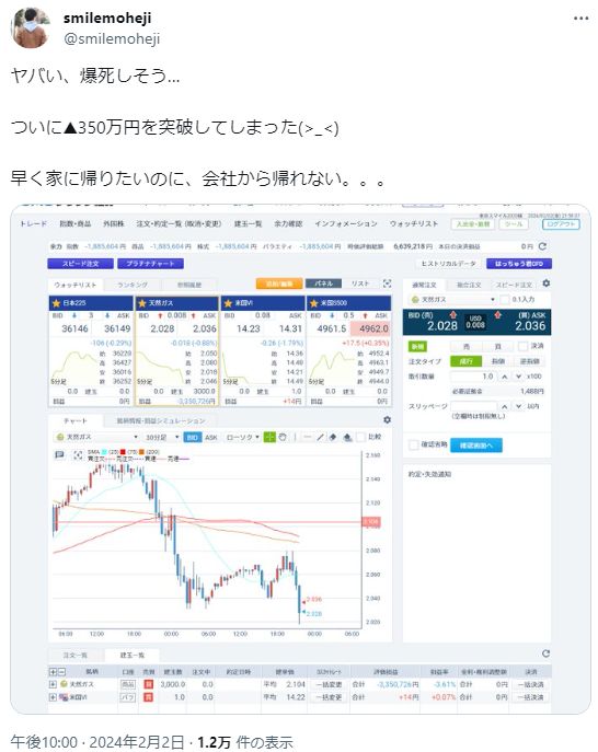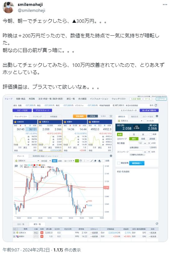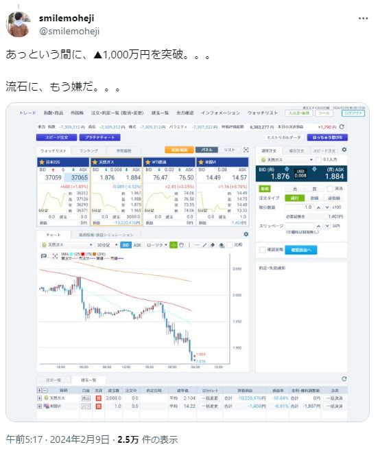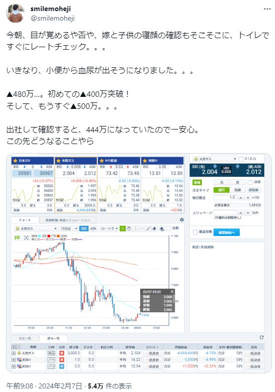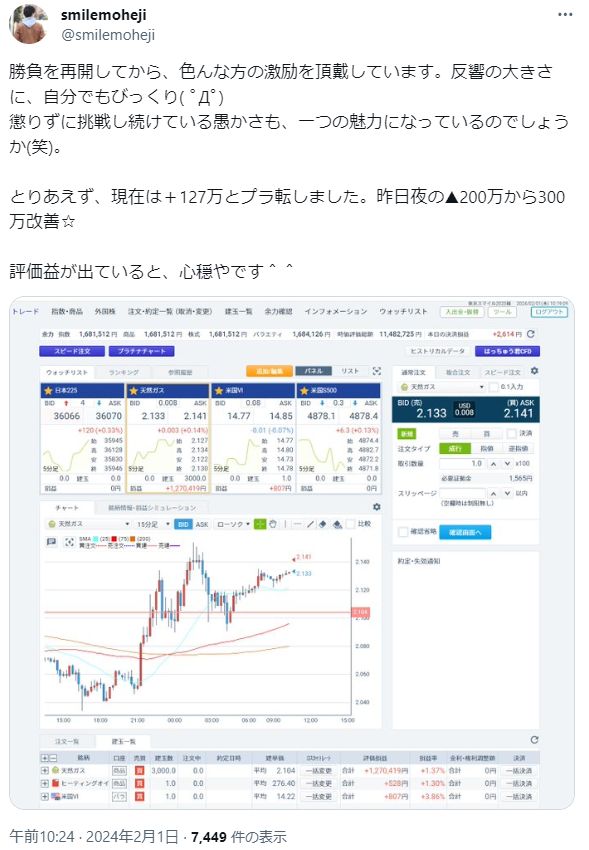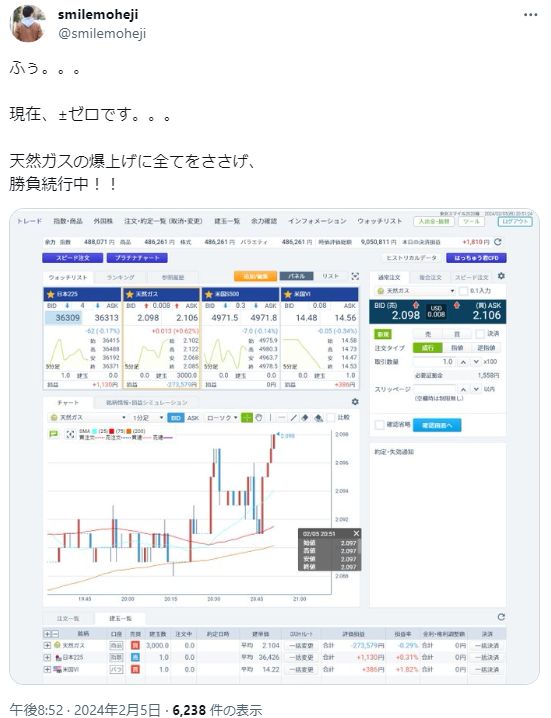 ですが5日には含み損0円まで回復するなど、天然ガスのボラの大きさが理解できます