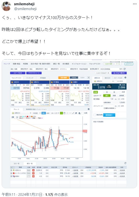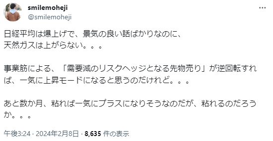 この天然ガスに手を出してしまったのがsmilemoheji氏です