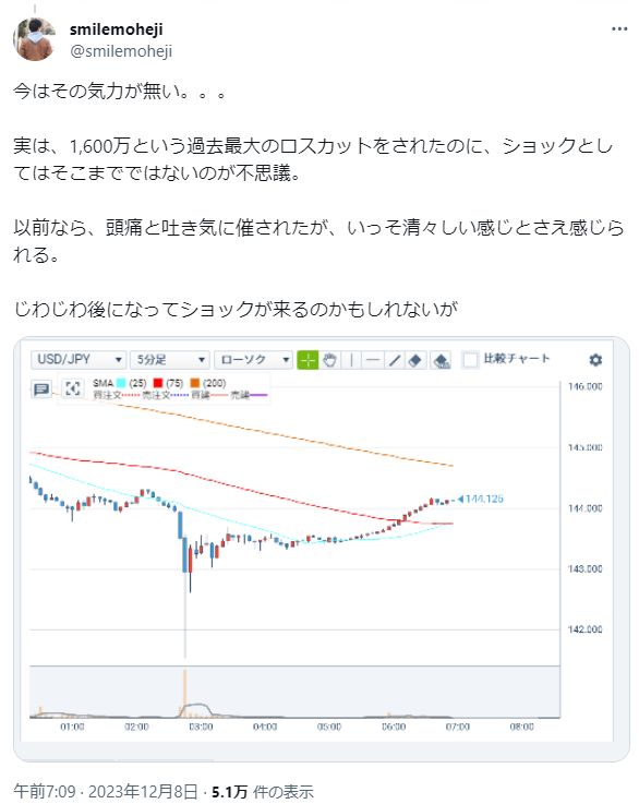 去年12月にドル円のロングポジションで過去最大のロスカット