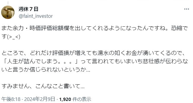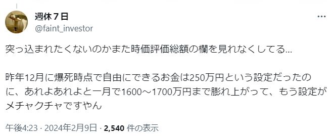 その後、含み損は初めて400万円を超え、血尿が出そうになったそうです