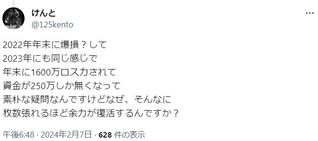 反転しなければ人生が詰んでしまうとポストしました