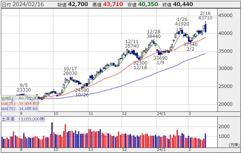 そんな株で呑み代を稼ぎたいFP技能士氏がレーザーテックに手を出したのが2月16日です