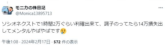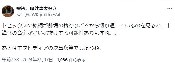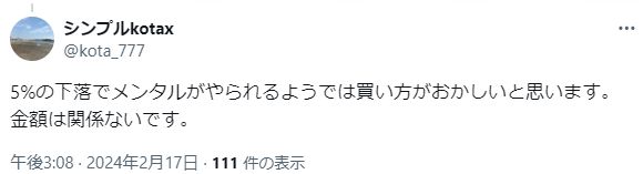 — 株で呑み代を稼ぎたいFP技能士 (@carsmyhome) February 16, 2024