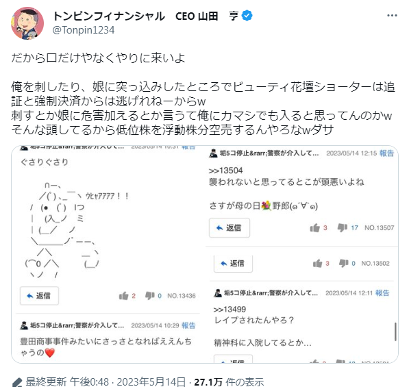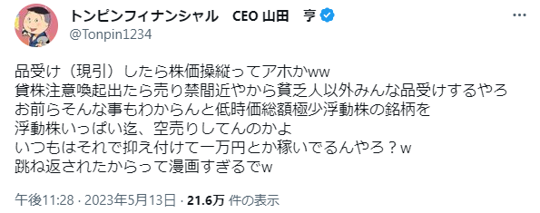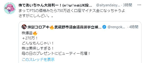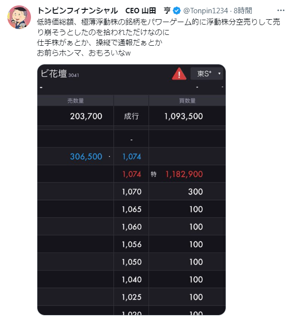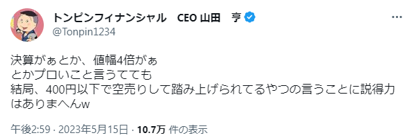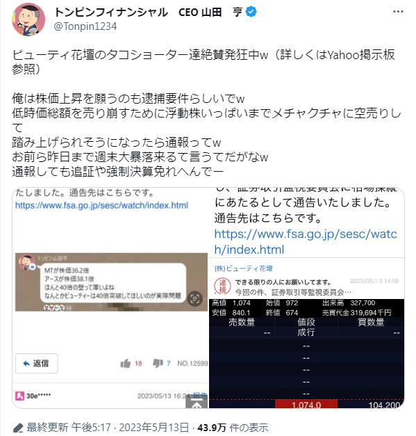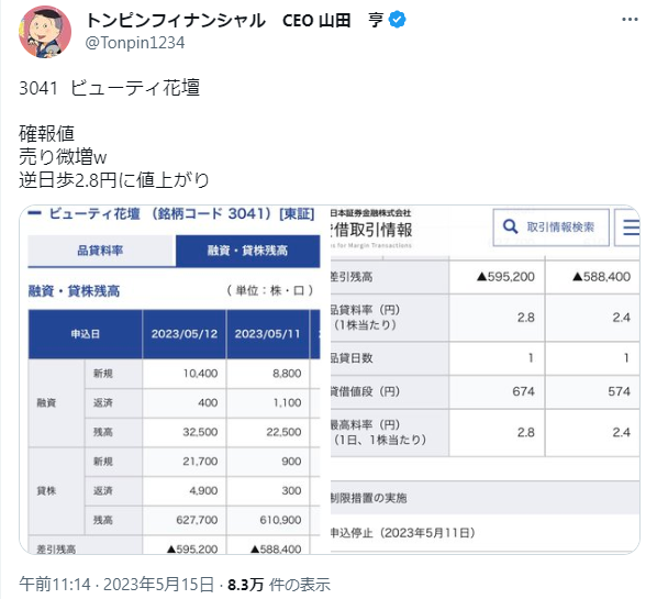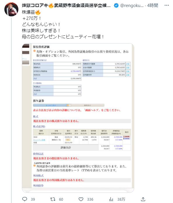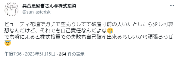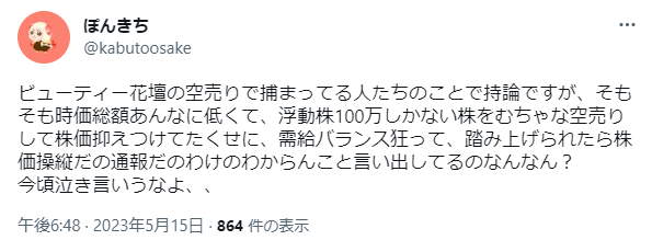 このビューティ花壇を信用全力で空売りした個人投資家が