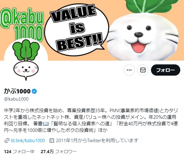 かぶ1000氏は、中学2年から株式投資を始め、専業投資家歴35年。