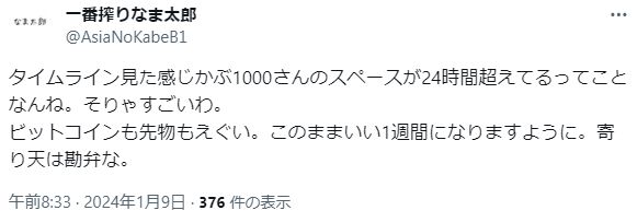 そんなかぶ1000氏ですが、1月8日午前6時41分からスペースを始めました