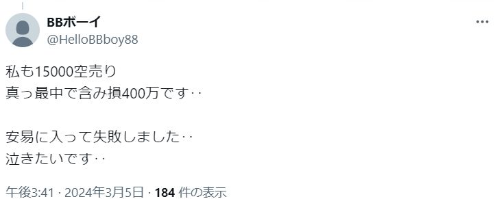 そんな三井E&Sを16000株も空売りして大損してしまった株クラが存在します