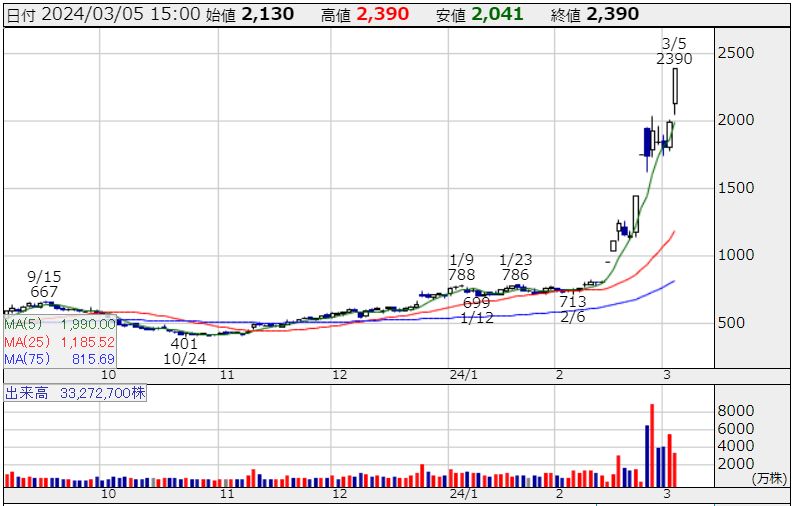 個人投資家でも人気な銘柄なことから爆益報告が溢れている銘柄です