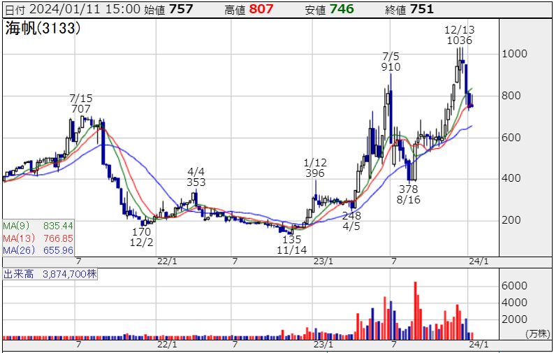トンピン銘柄の本命として考えられている海帆についての株クラの反応はというと