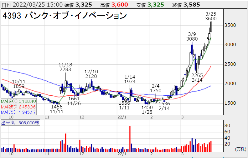 バンクオブイノベーションが何気にすごい日足しとる pic.twitter.com/VSI47H2r3p