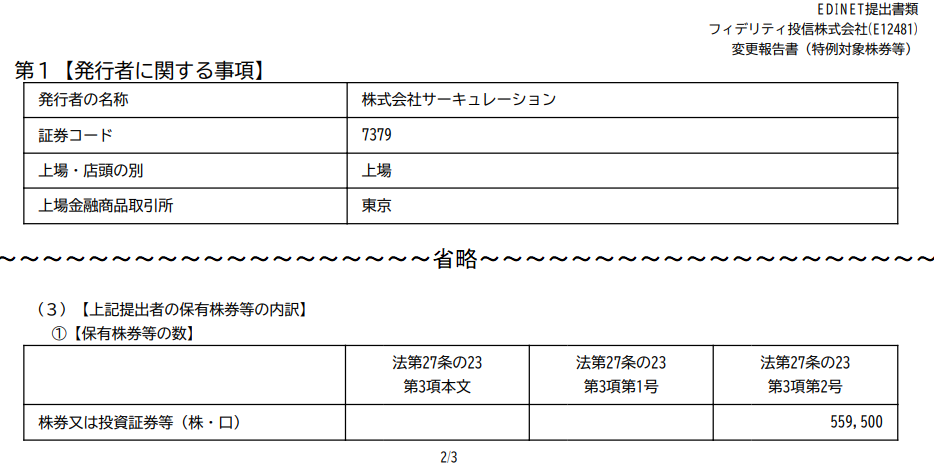 このようにフィデリティ投信株式会社は大量に買い増しをしています