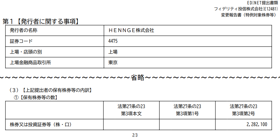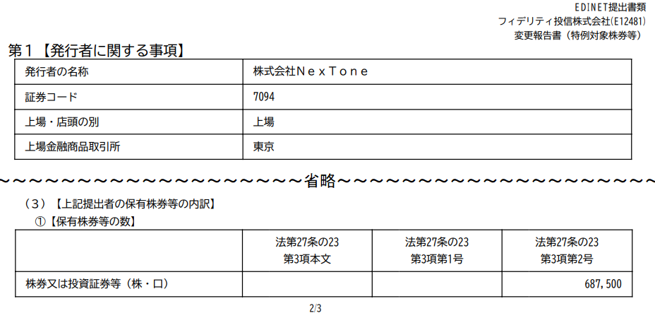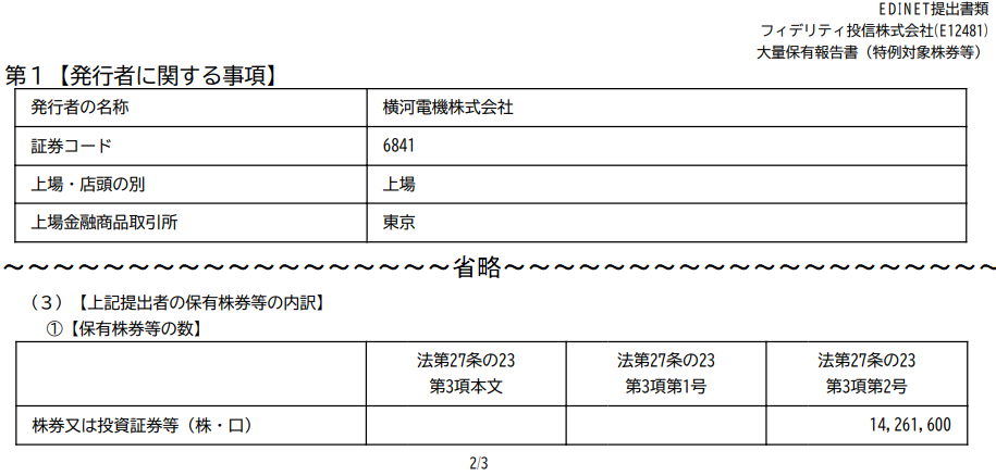 このフィデリティ投信株式会社が本日 大量保有報告書を提出しました