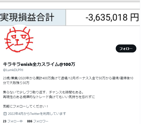 キラキラenish全力スライム@100万氏の次のツイートが気になるところです