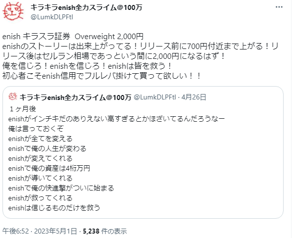 enish キラスラ証券 Overweight 2,000円