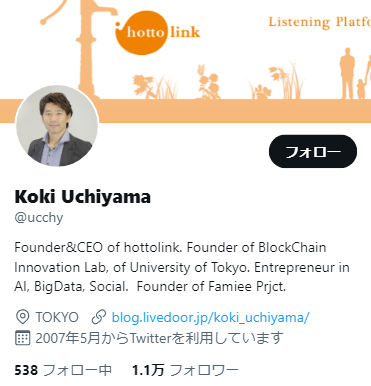 株式会社ホットリンク代表取締役社長CEO内山幸樹氏はTwitterをされており