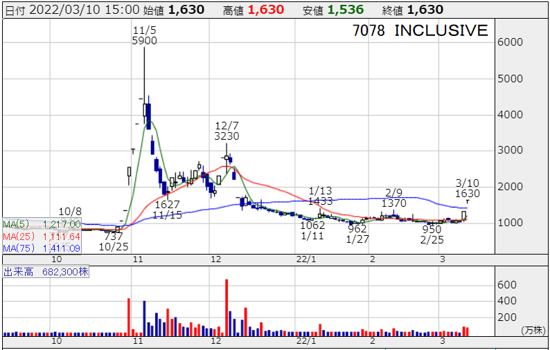 この発表を受けてINCLUSIVEの株価は
