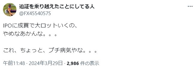 とIPOで大きな勝負をしている追証を乗り越えたことにしてる人氏ですが