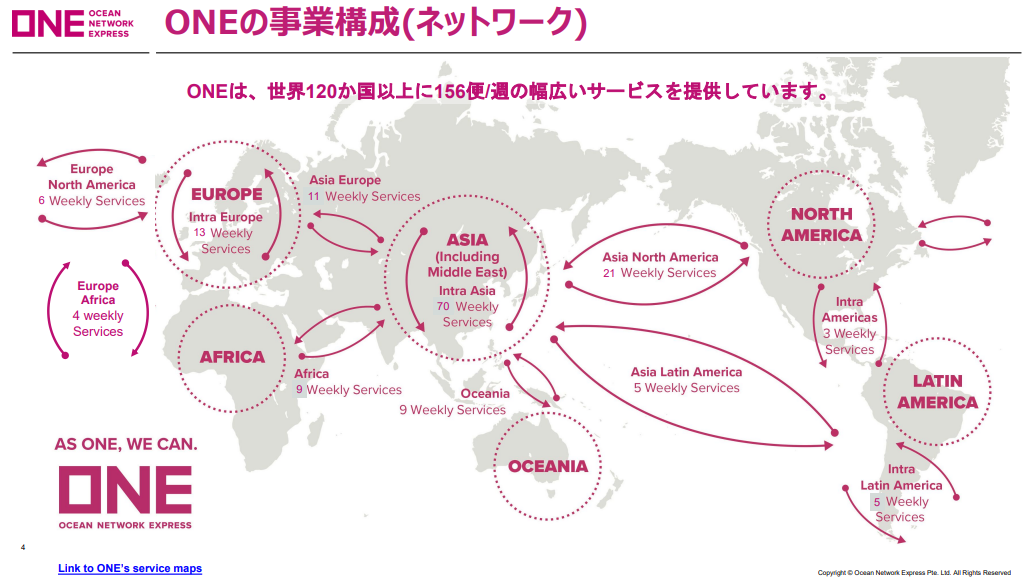 ONEは、世界120か国以上に156便/週の幅広いサービスを提供しています