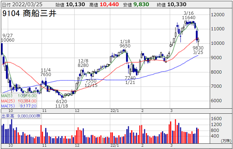 海運特有?の権利落ち後の爆下げは商船三井に重なるとこがある— たまごとじいじ*❖ (@Deaf0210369) March 25, 2022