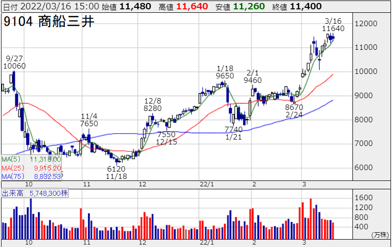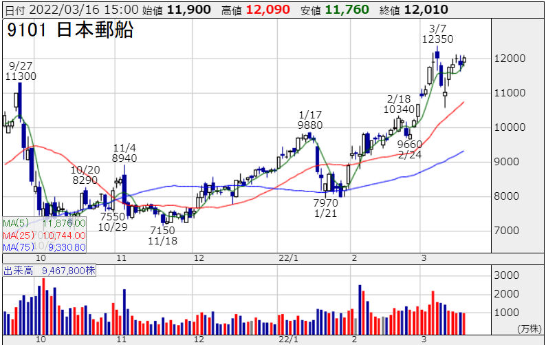 このレーティング引き上げで海運株の大手3社の株価は軒並み上昇しましたが
