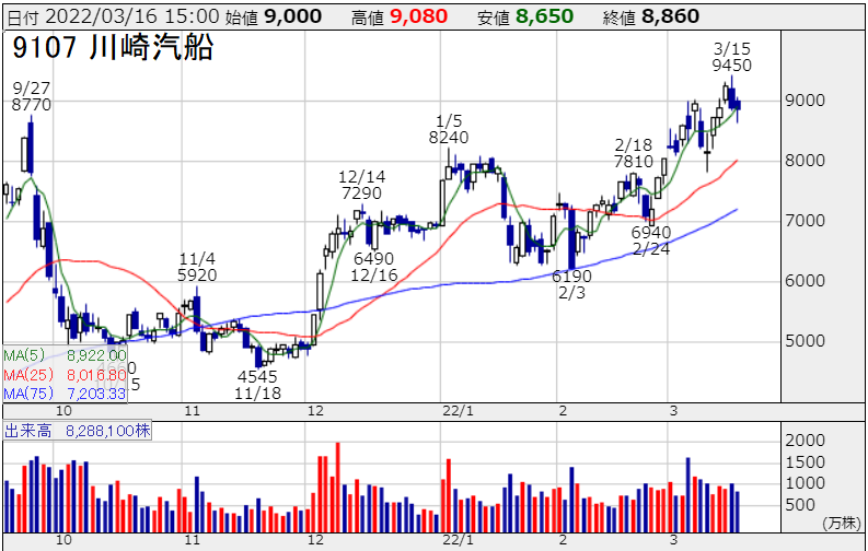 川崎汽船は死亡中。 pic.twitter.com/LArlb194a7— 影虎 (@KagetoraINV) March 16, 2022