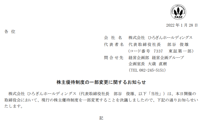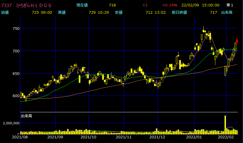 桐谷さん株主優待銘柄のひろぎんHDの株価が爆上げ
