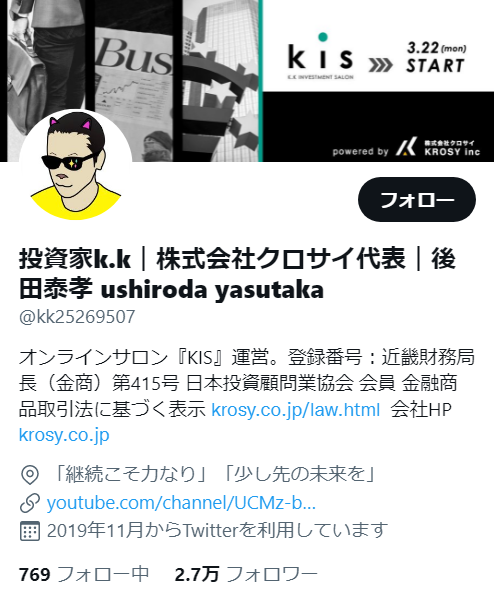 最近株クラに話題を提供しなくなった投資家k.k氏ですが