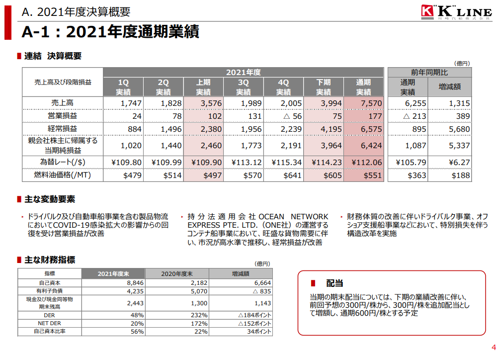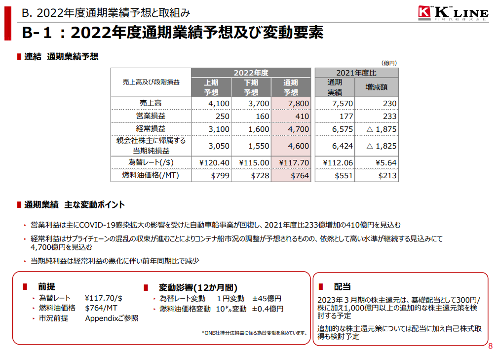 この決算発表を受けて川崎汽船の株価は大きく上昇することとなりましたが