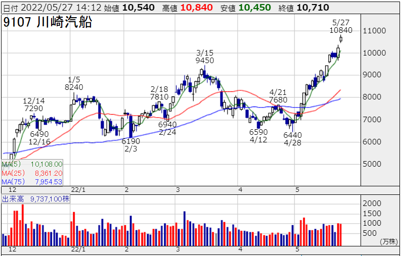 ここまで川崎汽船上がったら分割織り込み上昇9割は進んでそう
