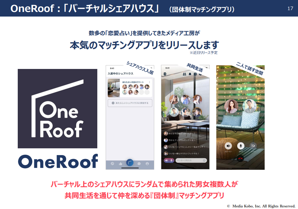 メディア工房、バーチャルシェアハウスマッチングアプリか