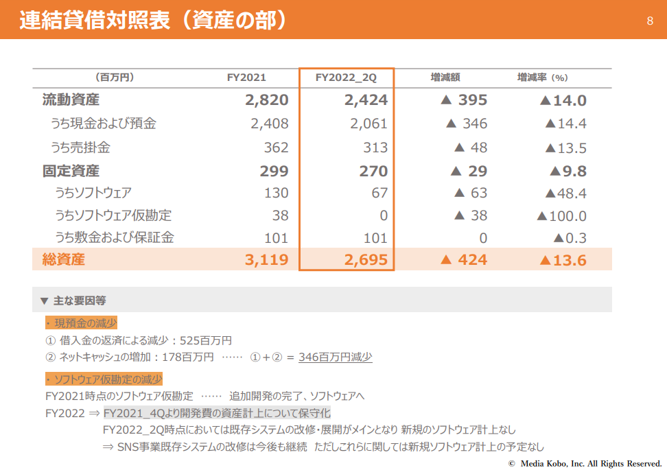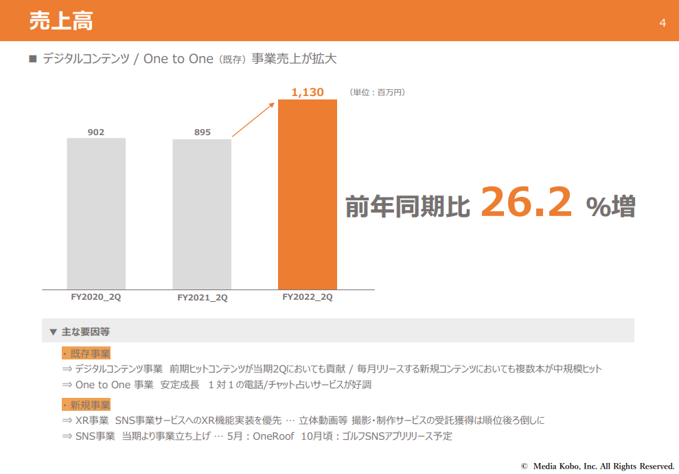 メディア工房は本日22日の11時に中間決算説明会資料を出しました