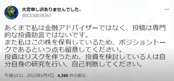アカウント名やプロフィール部分は今回の前澤工業の井村煽りの件で変更されてしまいましたが