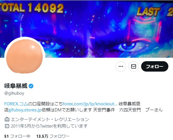 株クラに留まらずFX、そして仮想通貨界隈でも超有名インフルエンサーの岐阜暴威氏です