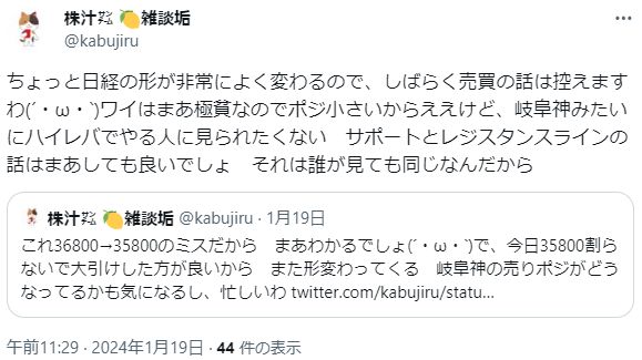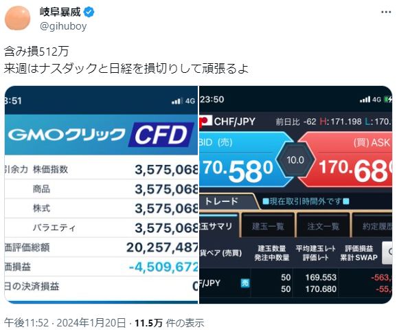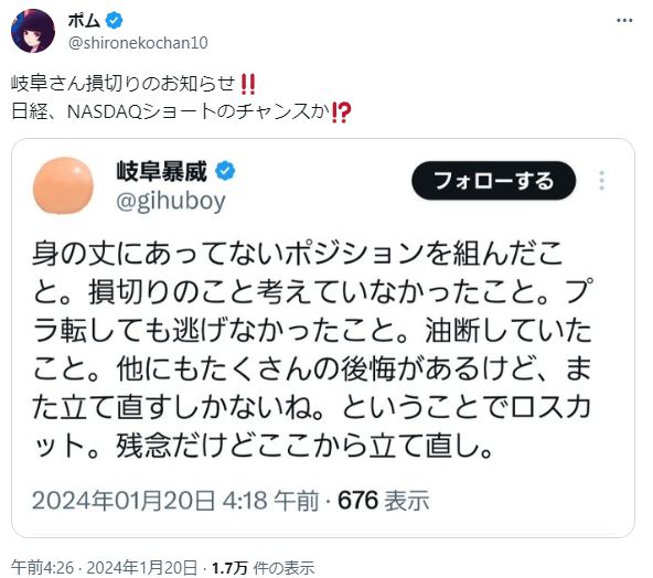 — 損切りできないマン (@losscuttt) January 18, 2024