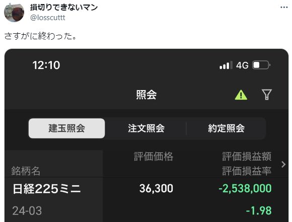 — 損切りできないマン (@losscuttt) January 12, 2024
