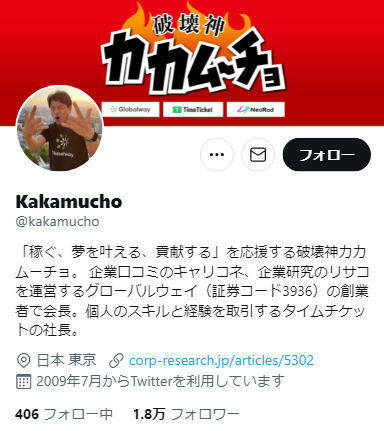 グローバルウェイの創業者で会長のカカムーチョ氏のツイートからです