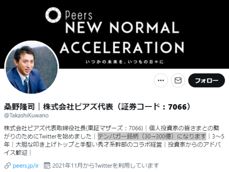 — 桑野隆司|株式会社ピアズ代表(証券コード:7066) (@TakashiKuwano) April 7, 2022