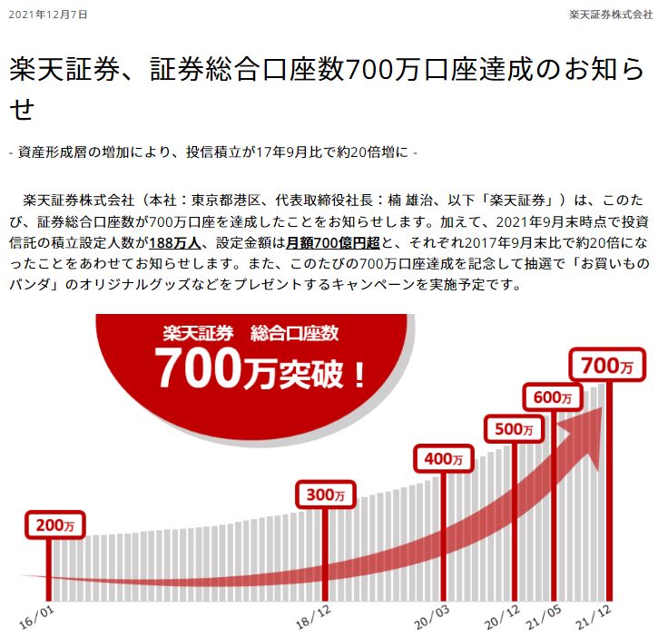 去年12月には証券総合口座数700万口座達成と国内最大規模の証券口座開設数となっています