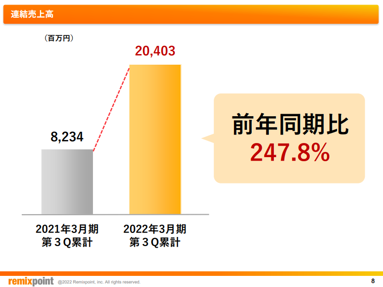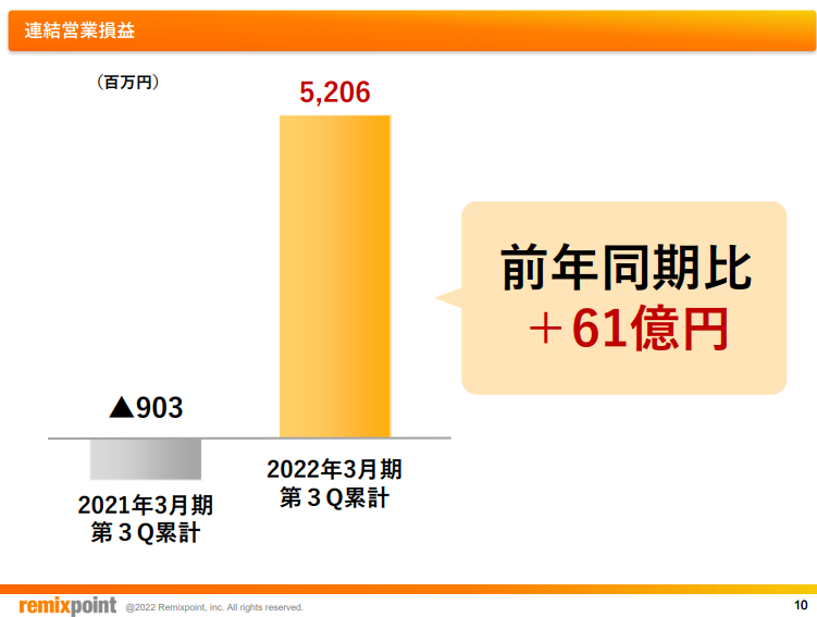 以前当株クラクリックで報じましたが、リミックスポイントは22年3月期第3四半期の決算発表で