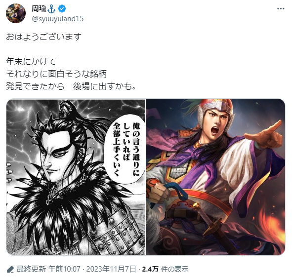 — 周瑜⚓ (@syuuyuland15) November 7, 2023