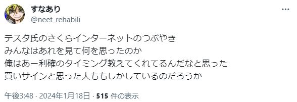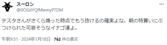 — テスタ (@tesuta001) January 17, 2024
