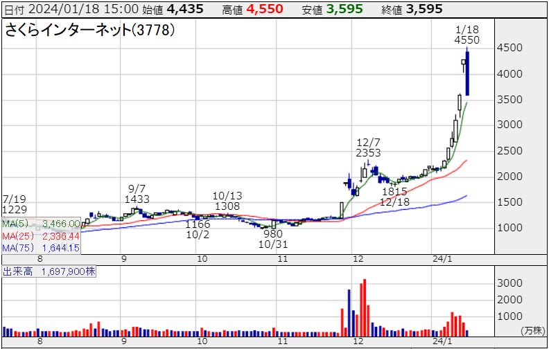 イナゴが殺到して昨夜のPTSではさくらインターネットの株価は急騰しましたが