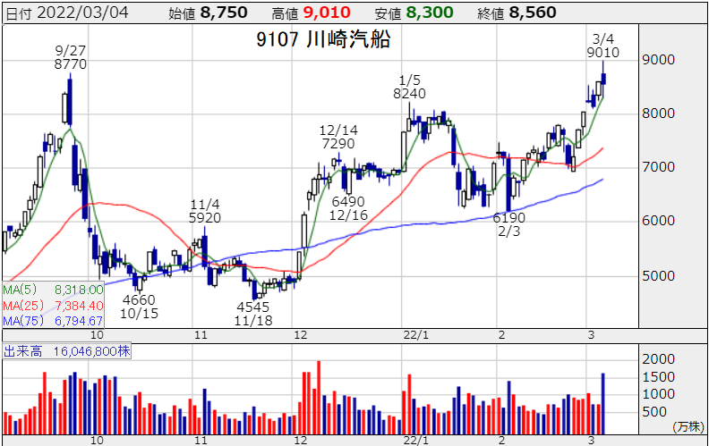 お、川崎汽船PTSで爆上げきてる。勝利か?☺️