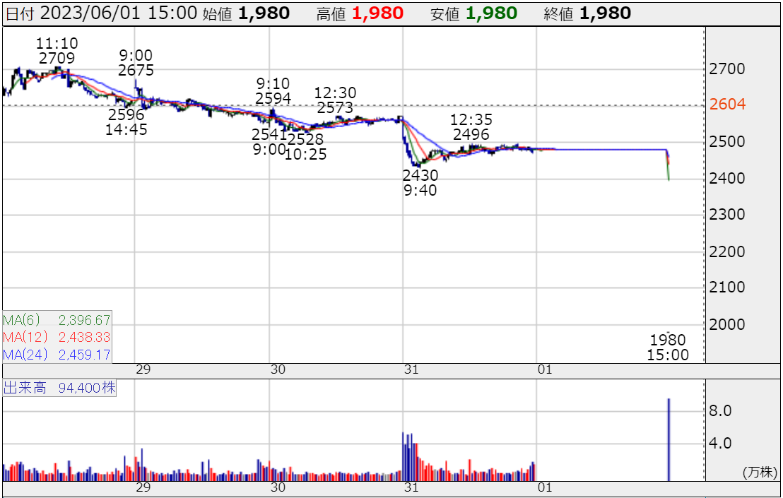 本日は昨日の開示を受けて圧倒的ストップ安で取引を終えました