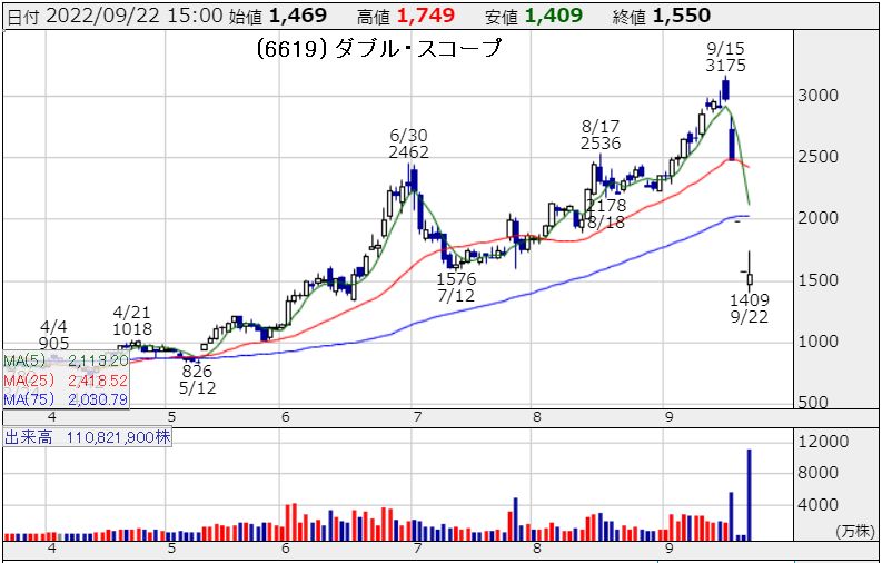 以前の記事・動画でダブルスコープの株価が暴落したことはお伝えしました